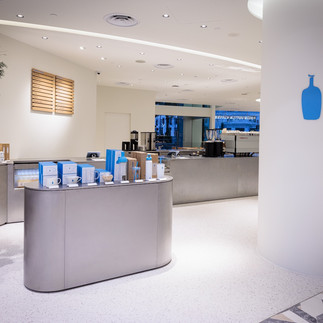 barriers, creating a natural flow between guests, baristas, and the café space. At the heart of the café is a U-shaped island bar, offering 360-degree visibility and allowing for warm, personal interactions that reflect Blue Bottle Coffee’s hospitality.