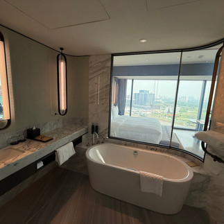 This gorgeous hotel offers 14 different room types, including suites and differing view frontages, from King to Deluxe, Executive and Suites. We stayed in a King One Bedroom Suite River View, and had an excellent view of the Saigon River with Bach Dang port, and also a good streetscape featuring the TranHung Dao statue, a dynamic landmark (moat-surrounded statue on a pedestal depicting a legendary 13th-century military leader) that encapsulates the pulse of the city, with connectivity to District 2, 4 and 7. Additionally, guests staying in Suites and Executive rooms can enjoy access to the hotel’s Executive Lounge.