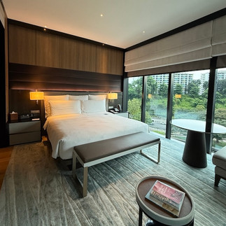 We stayed in a Junior Suite River View Room and the view was just spectacular; a wonderful room with brilliant shower amenities and toiletries and a fantastic river view and you can see folks exercising, biking and strolling early in the morning, so serene! Enhancing home comforts, luxurious Byredo bath products pamper the senses while minimizing single-use plastics, paired with a Bose Bluetooth soundbar, Nespresso coffee machine, Monogram Teas, and a pillow menu offering six choices for a restful sleep. The Shower Space in the room was extremely generous! Tailored for the modern traveler, guests receive complimentary access to Timeshifter for effortless time zone adjustment and premium MindFi access for guided meditations and wellness exercises.