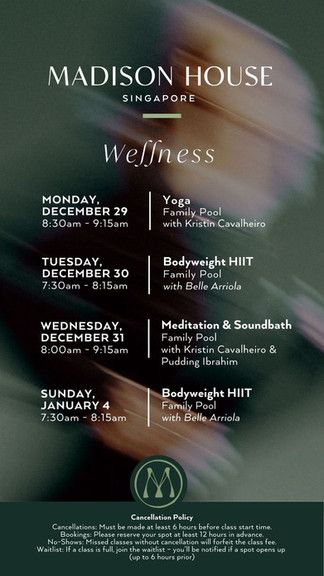 Each week, Madison House will feature a curated line-up of sessions designed to offer a first glimpse into the club’s wellness philosophy. The current schedule is showcased..