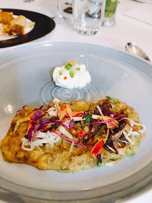 Amuse Bouche – soup on foam.