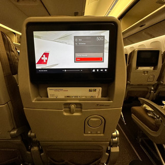 Every seat in Economy Class has its own screen on long-haul flights. A generous seat pitch and adjustable neck cushions ensured that I had a comfortable flight. We had our own personal, large 11" screen with touch screen on our Boeing 777-300ER and this was just simply amazing, and well configured for our comfort and needs. The new seat cushion technology and greater legroom provide maximum comfort and I could feel this benefit on my long haul flight from Singapore to Zurich, Switzerland, en-route to Vienna in Austria, a 13-hour flight with a stop-over in Zurich. A holder for drinks and one for my smartphone are new additions to the seat, which I also detected once on-board.