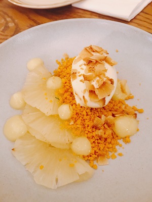 To round off the evening, we tried 2 desserts. Pineapple Carpaccio with ginger syrup, coconut sorbet and curry crumble $14. The curry crumble added a dash of spiciness and balance to the natural sweetness of the pineapple.