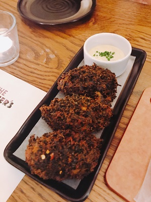 Next up was the Kale and Gorgonzolo Bunuelos with saffron aiolo $14. It was really tasty but salty. We gave some feedback to the Chef.